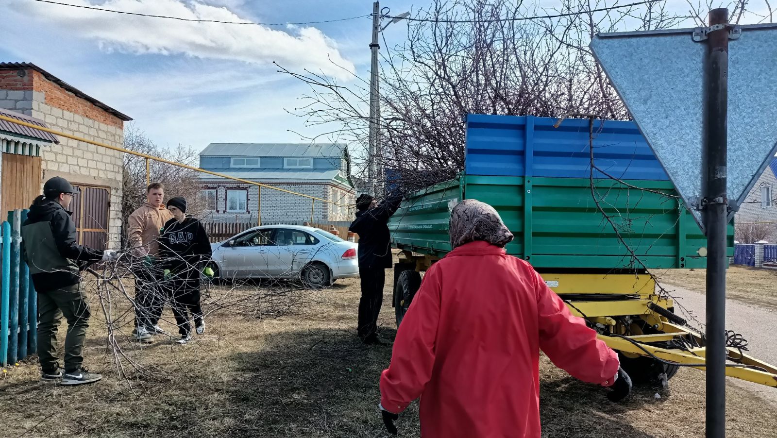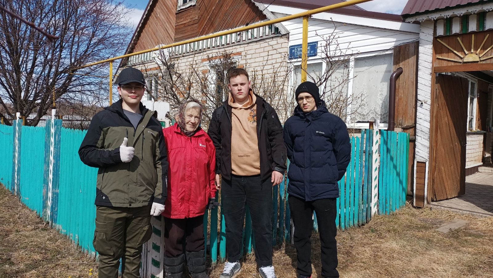 11 Б сыйныфы егетләре педагогик хезмәт ветераны Г.Г. Емелюшинага бакчаны киселгән ботаклардан чистартырга булыштылар.