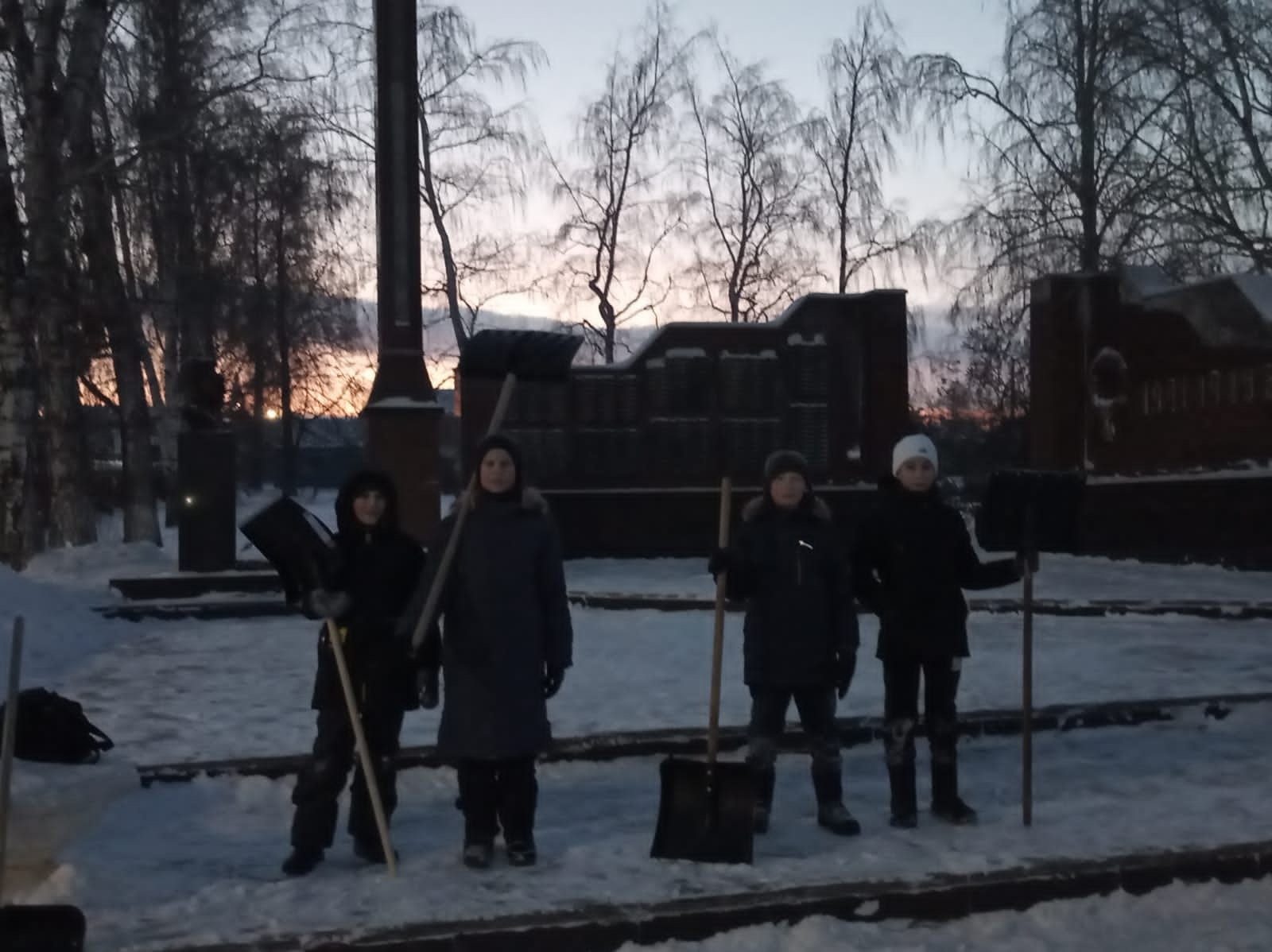 Учащиеся 5А класса (кл.руководитель Булатова М.А.) у мемориала "Парк Победы".