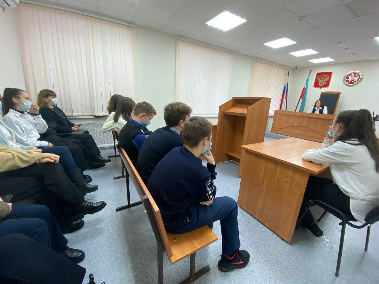 В рамках реализации совместного проекта Министерства образования и науки РТ и Управления Судебного департамента "Правосудие от А до Я" прошла встреча учащихся Камскоустьинской школы с мировым судьей Альмеевой Э.Н. в Судебном участке 1 по Камско-Устьинскому судебному району РТ.