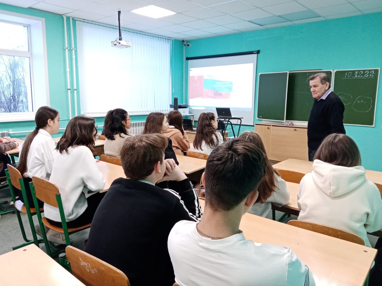В Камскоустьинской школе 9 декабря прошла встреча с участником специальной военной операции на Украине. Офицер, выпускник Казанского танкового училища Хайруллин Эмиль посетил родную школу: побеседовал с одиннадцатиклассниками, рассказал о подвигах российских военнослужащих. Старшеклассники слушали с большим интересом и задавали серьезные вопросы. Эмиль рассказал ребятам о том, как ещё в школе мечтал стать военным и как шёл к своей мечте, о своей службе в армии. На примере Эмиля старшеклассники увидели, что настоящие герои живут рядом, что мужество, храбрость, любовь к близким, Родине – это качества настоящего человека.