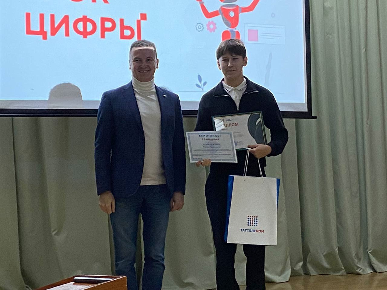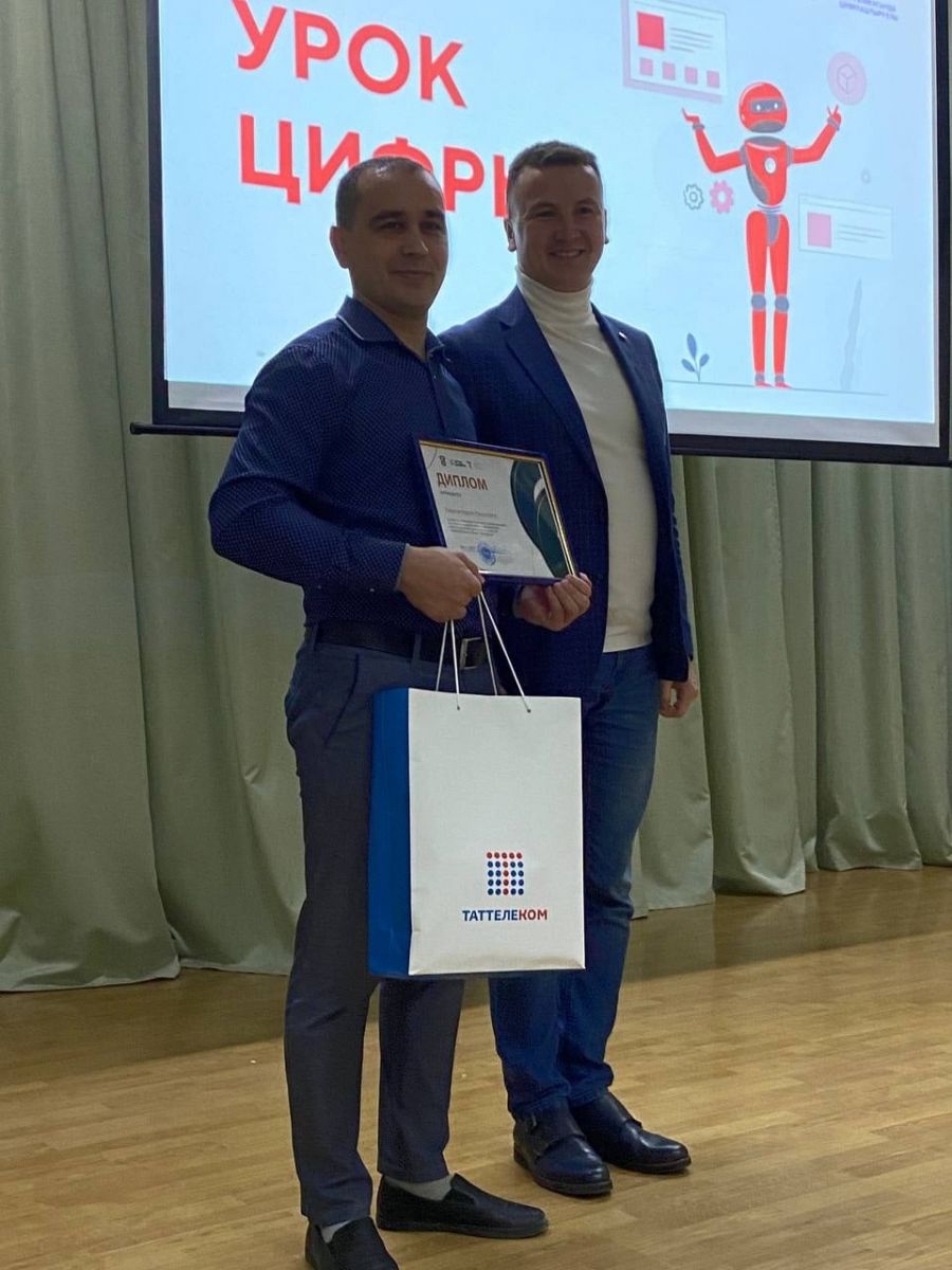 В мае 2022 года был объявлен конкурс на лучший видеоролик в рамках Года цифровизации. Ролики снимали на темы "Родной край" и "Любимое хобби". Поздравляем ученика 11 б класса Хамидуллина Раиля с 1 местом и ученика 4б класса Загрутдинова Ризвана со 2 местом!!! Сегодня в торжественной обстановке ребят поздравил заместитель министра по ГО ЧС РТ Гисмятов Р.Р., который вручил дипломы, сертификаты и ценные подарки. Также Радик Расыхович отметил работу учителя, который был руководителем ребят, и вручил благодарственное письмо и ценные подарки Равилову Ф.Р. Молодцы! !! Гордимся!