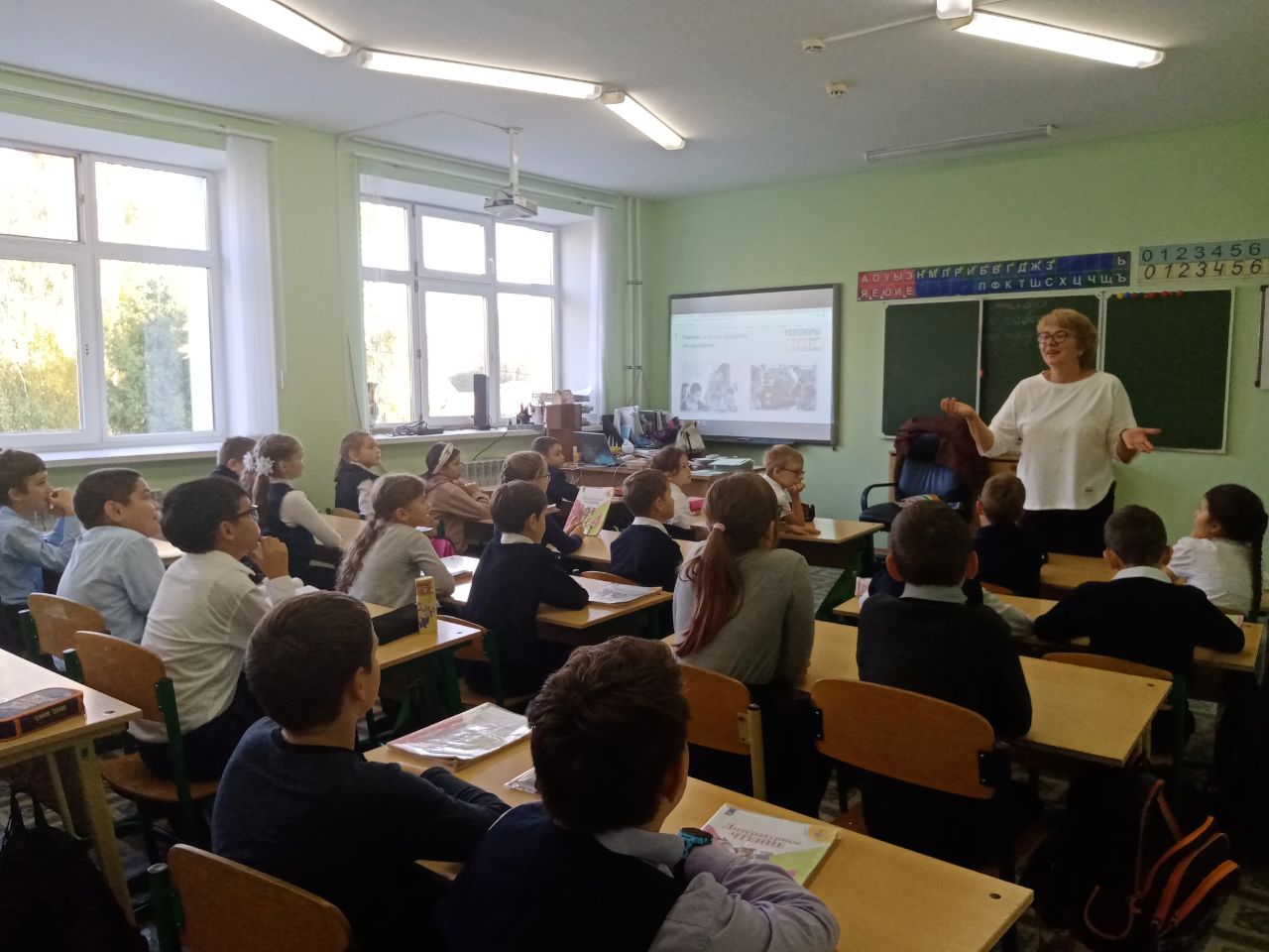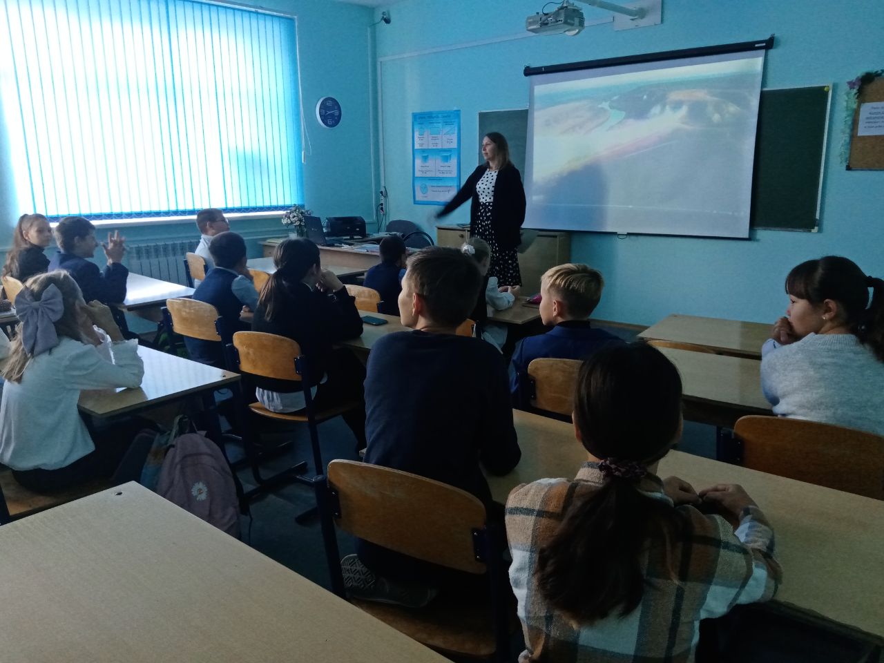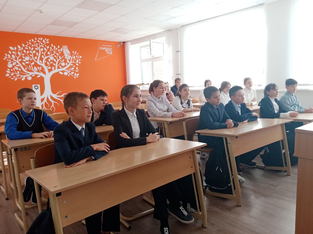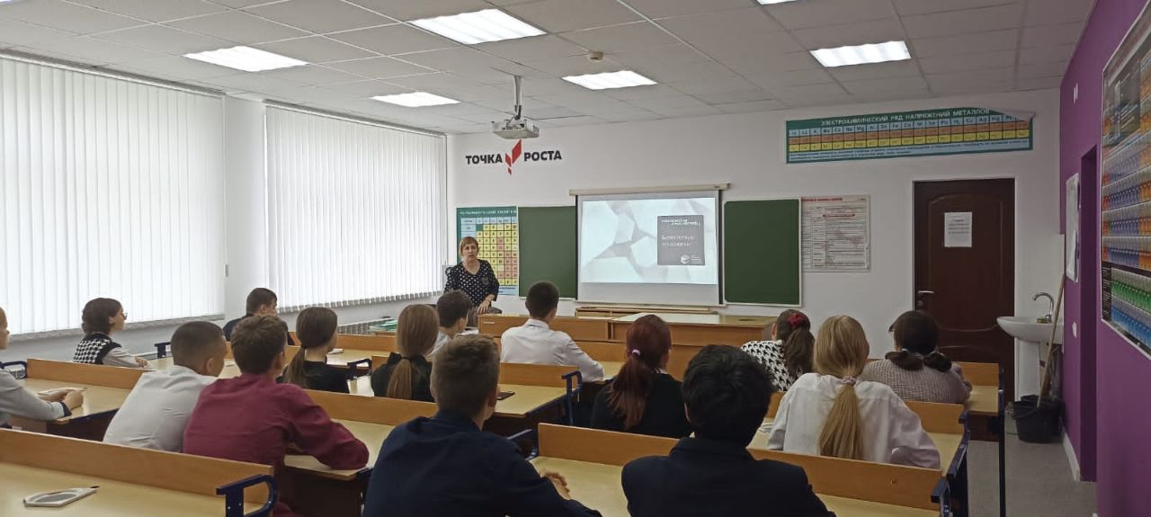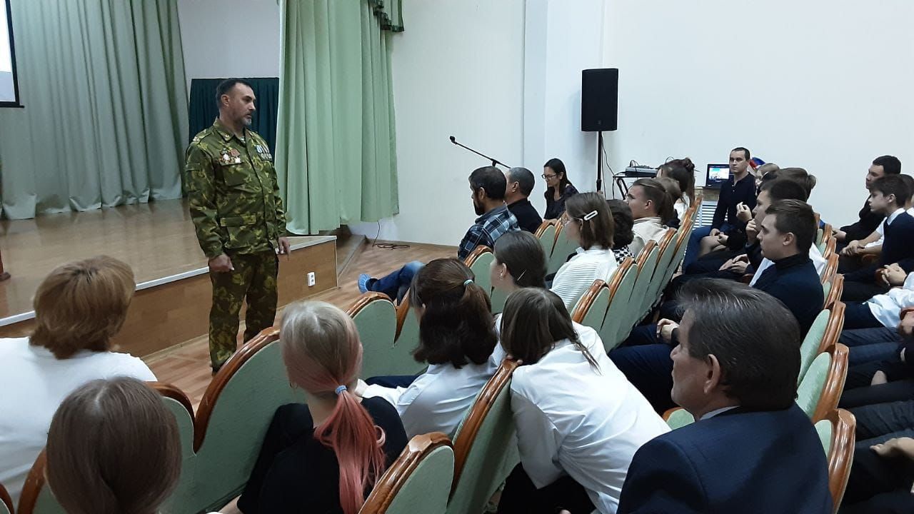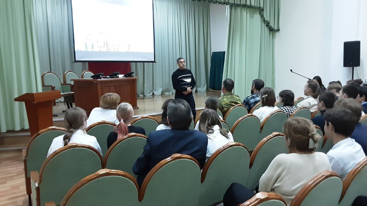 «Мөһим турында сөйләшүләр» Бөтенроссия проекты кысаларында укытучылар көненә багышланган дәрес булды. Дәрес-әңгәмә барышында педагогик һөнәр ияләренең җаваплылыгы, укучыларга илебезнең үткәне һәм бүгенгесе турында мәгълүмат бирүдә укытучының роле тематикасы күтәрелде. Аерым алганда, Россиянең яңа тарихы вакыйгаларының тарихи әһәмияте турында сөйләштеләр – Донбасс халык республикаларында һәм азат ителгән территорияләрдә референдумнар үткәрү.