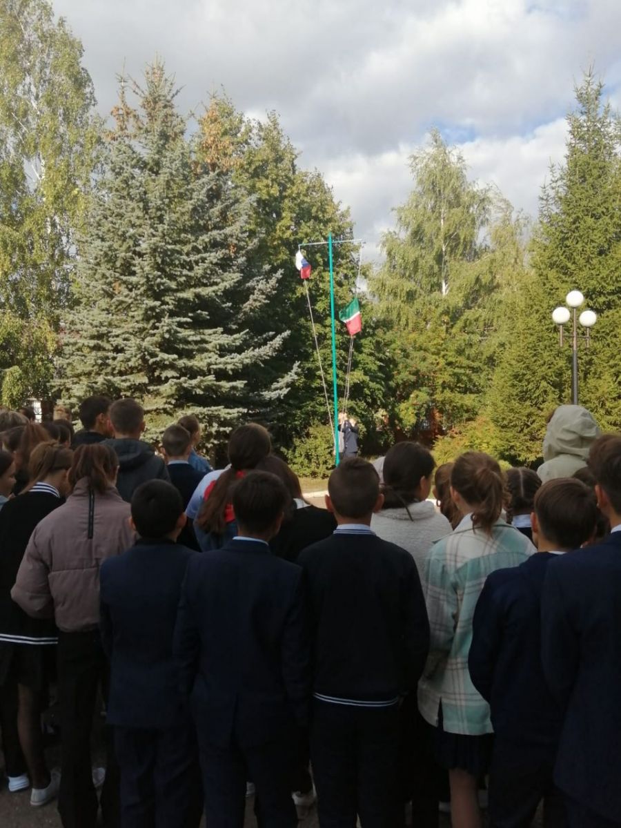 В понедельник 5 сентября в России прошли линейки с поднятием Государственного флага Российской Федерации, прослушиванием гимна. Еженедельное поднятие Государственного флага РФ в школах нашей страны - это новая инициатива, которую поддержал президент РФ Владимир Владимирович Путин. Поднятие государственного флага - это особый торжественный ритуал, на котором будем освещать планы школы на неделю, чествовать обучающихся по итогам прошедшей недели за спортивные, учебные, общественные достижения. Почетное право поднять флаг Российской Федерации и Республики Татарстан в Камскоустьинской школе предоставилось юнармейцам, обучающимся 11 класса - Хамидуллину Раилю и Лысачкину Тимуру.