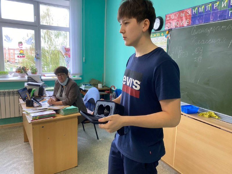 10 сыйныф укучысы Раил Хәмидуллин укучылар белән 3 баскычлы әңгәмә үткәрде һәм VR-кү злек һәм телефон ярдәмендә виртуаль чынбарлыкның нәрсә икәнлеген күрсәтте. Балалар 360 градус күзәтү белән чынлык турында видео карый алдылар.