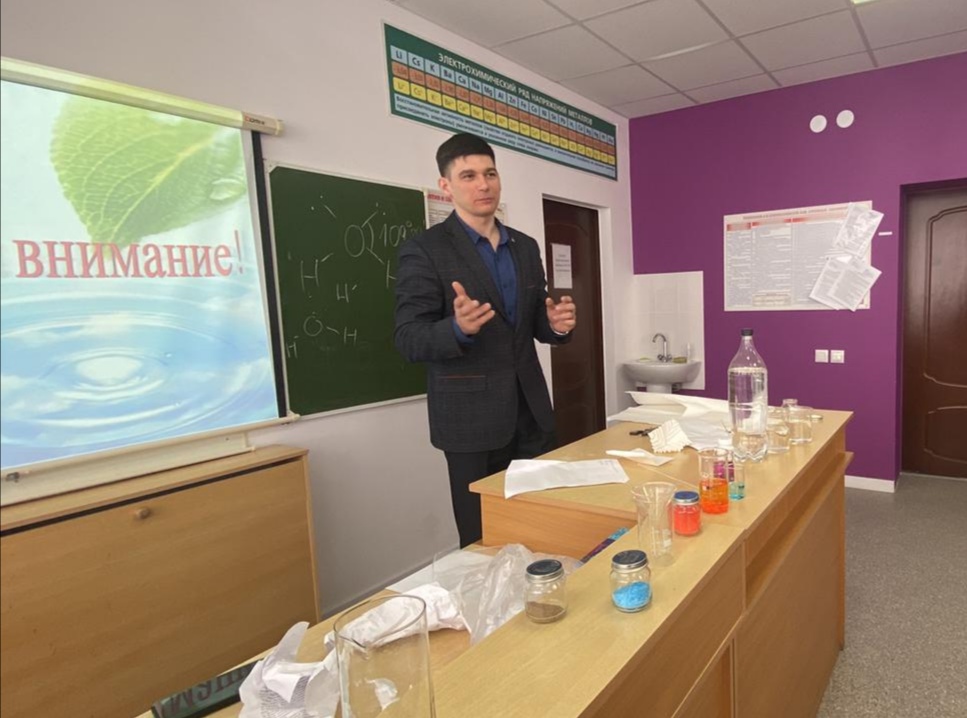19 марта перед старшеклассниками Камскоустьинской школы выступил Петров Е.С. - доцент кафедры химии и технологии органических соединений азота КНИТУ (КХТИ). Евгений Сергеевич провел для ребят научно-популярные лекции: "Удивительные средства воды", "Лекарственные препараты и энергонасыщенные материалы - свойства, общность и области применения", "Применение энергонасыщенных материалов в гражданской отрасли". В ходе встречи ребята с помощью доступных материалов смогли провести опыты по изучению процесса растворения веществ, в том числе солей. и фильтрации.