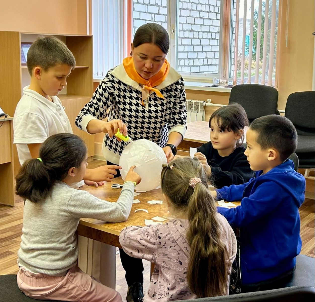 Ко Дню народного Единства советник директора по воспитанию и взаимодействию с детскими общественными объединениями Гимадиева Г.К. совместно с ребятами, посещающими пришкольный лагерь, организовала графический флешмоб «Шар дружбы». В рамках мероприятия, участники создали шар из папье-маше с рисунками, иллюстрирующими всё культурное многообразие народов России.
