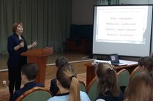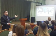 В рамках Парламентского урока учитель обществознания Саттаров М.Ф. провел беседу с учащимися 8-11 классов на тему "Конституция Республики Татарстан: 25 лет истории". Марат Фатыхович рассказал учащимся об истории создания конституции РТ, которая была написана на год раньше российской конституции, напомнил основные законы конституции и их роль в нашей жизни. В конце выступления был показан фильм "Вперед Татарстан".