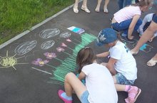 В День России дети пришкольного лагеря приняли участие в конкурсе рисунков на асфальте.