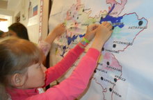 Сегодня в Камскоустьинской школе прошли мероприятия, посвященные Дню России. Акция "Дружная страна". Ребята приклеивали смайлики на те населенные пункты, где живут их друзья. Акция показала, что друзья живут и в Альметьевске, и в Набережных Челнах, и Зеленодольске, и конечно, больше всего смайликов получили Казань и Камское Устье.