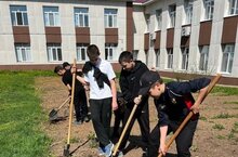 Экологик айлык кысаларында мәктәп территориясен тәртипкә китерү дәвам итә.