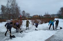 8нче сыйныф укучылары Л.И. Айсин белән бергә "Җиңү парк"ындагы хәрби техниканы кардан чистарттылар.