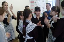 С целью создания позитивного настроя у учащихся на взаимодействие, Айсина А.Ш. провела игру-тренинг "Улыбка" с учащимися 8 класса.