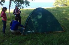 Ходить в походы – весело,Ходить в походы – классно!Пришли, котёл подвесилиНад нашим костром ясным.Внезапно тучи чёрныеЗакрыли солнце красное,А мы сидим весёлыеИ думаем: «Прекрасно нам,Прекрасно нам сидеть с костром,Общаться нам с природою».А месяц в небе голубомОбщается со звёздамиВ воздухе ночном.Вот новый день приходит к нам,Зовет нас в путь обратный.Покинуть жалко края нам,Где было так приятноНам время провести.Ходить в походы – весело,Ходить в походы – классно!Мы спели песнь последнюю,Погас костер наш ясный.