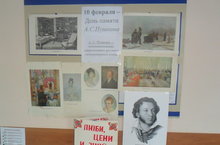 В школе была организована выставка "Солнце русской поэзии” в память о величайшем поэте А.С.Пушкине, имя и творчество которого широко известно во всем мире.