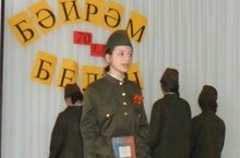 Тех людей, что добыли победу в войне.Хайруллин Д., Мухамадуллина Э., Загидуллина З., Сабирова А., Мухаметшина А., Назмеева А. и Сунгатова А. участвовали в школьном театрализованном представлении по одноименной повести Б.Васильева "А зори здесь тихие". Учащиеся отразили всё настолько искренне и эмоционально, что зрители с трудом сдерживали слезы.