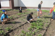 Мәктәп яны бакчасында кызу эш бара. Укучылар яшелчәләргә су сибәләр,чүп утыйлар.