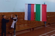 Атнаның беренче уку көне Россия Федерациясе һәм Татарстан Республикасының флагын күтәрү Россия һәм Татарстан гимнны астында башланды.