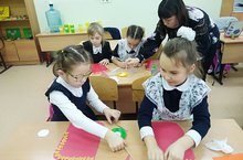1нче сыйныф укучылар Фахрутдинова Динәнең (1нче сыйныф) әнисе Гөлнар белән бергәләшеп открытка ясадылар.