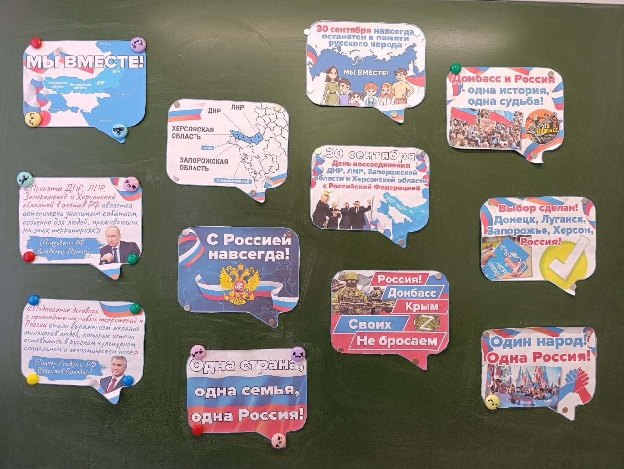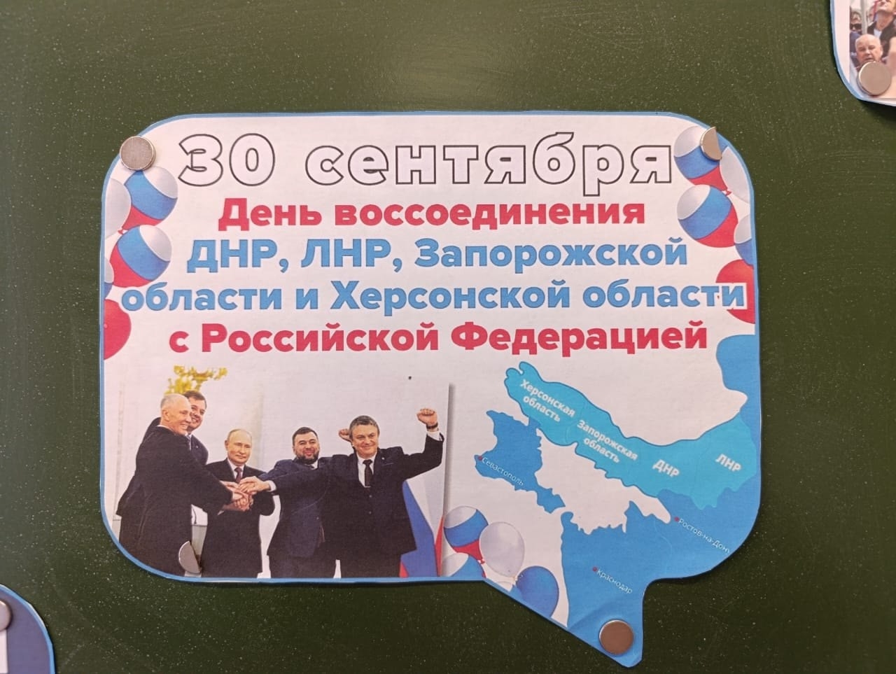 Советник по воспитанию Цыганова Т.А провела беседу с учащимися, посвящённую Дню воссоединения ДНР, ЛНР, Запорожской и Херсонской области.