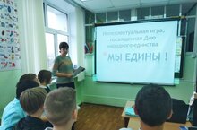 В дни осенних каникул в спортивном зале школы для обучающихся 7 и 10 классов состоялись спортивные состязания, а в 9 классе была проведена интеллектуальная игра, посвященная Дню народного единства «В единстве наша сила»