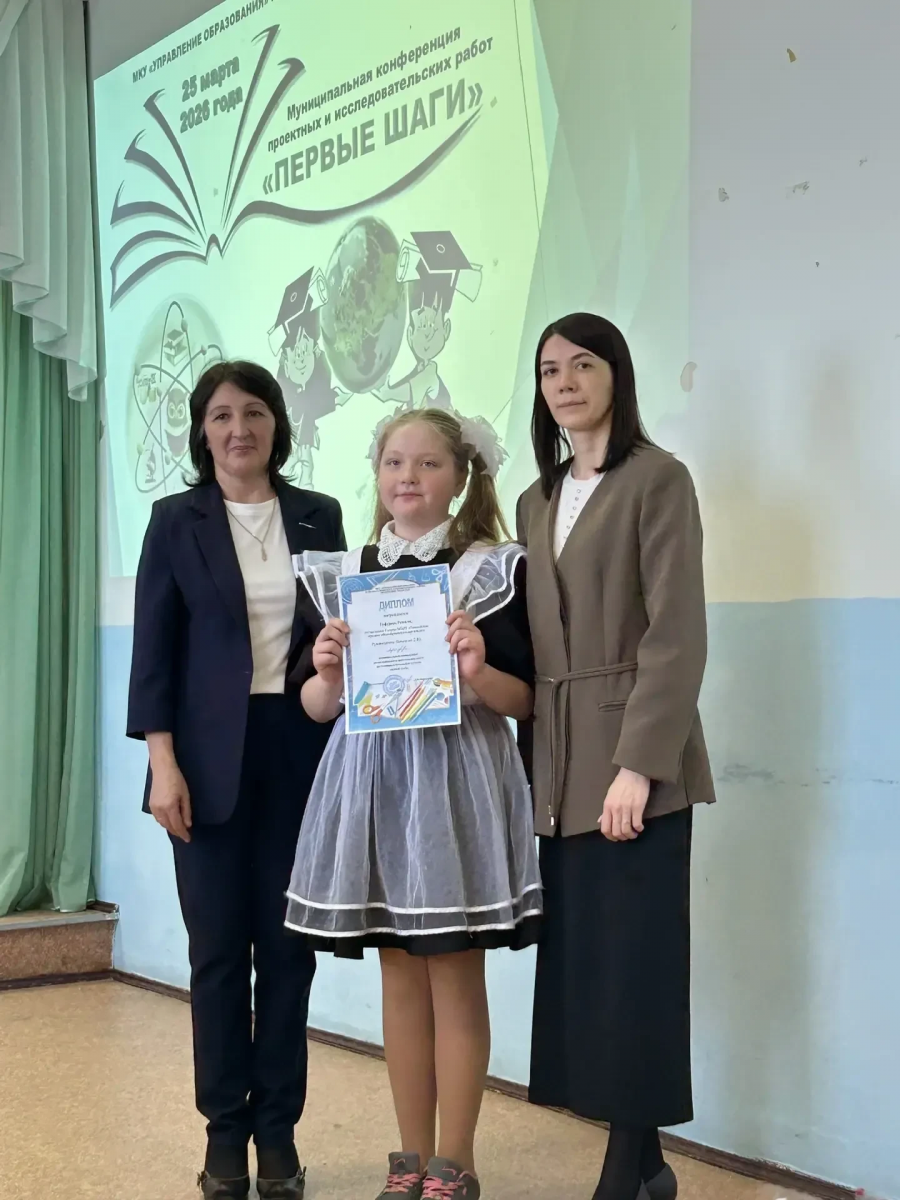 Поздравляем Гафурову Рамилю, ученицу 4 класса, и Балагурову Алену, ученицу 2 класса, представивших проекты на конкурс проектных и исследовательских работ «Первые шаги» и занявших почётное 2 место!