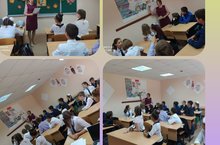 в 5 классе 1 сентября прошёл урок безопасности. Учащиеся вспомнили опасности, которые могут встретиться дома, по дороге до школы и в общественных местах. Ребята рисовали рисунки, схематически указывая опасности. Учащиеся в паре готовили проекты на данную им тему, тем самым вспомнили правила поведения при пожаре, как вести себя при нападении террористов и обнаружения подброшенного пакета, правила поведения с незнакомцами. К концу урока под итожили сказанное, защищая мини проекты.