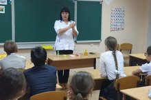 С целью усиления мер безопасности в 5 ом классе была проведена беседа на тему: "Профилактика гриппа". Медицинский работник ЦРБ Валиева З. Р. рассказала детям о мерах защиты от гриппа. Подробно дала инструкцию о применении антибактериальных средств и рассказала детям о правильном мытье рук.