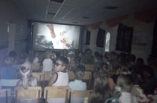Бүген безнең лагерьда 3 D "Зур сәяхәт" мультфильмы күрсәтелде. Балалар мәктәптән чыкмыйча гына кинотеатр атмосферасы белән хозурланды, шулай ук тәмле попкорн белән дә сыйландылар.