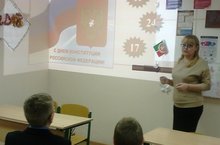 12 декабря Лизунина Э.Х. в 7 Б классе провела классный час, посвященный Дню Конституции РФ. Целями проведения мероприятия было познакомить с историей этого праздника, понятием и основами конституционного строя, учить уважать законы страны, воспитывать гражданскую позицию. Посмотрев видеоролик об истории Конституции РФ, ребята вспоминали структуру и основное содержание главного Закона нашей страны. Особое внимание уделили рассмотрению прав и обязанностей граждан РФ, понятию гражданство. Были рассмотрены все вопросы интересующие ребят. Классный час завершился проведением интерактивной игры - раскраски, где при правильном ответе картинки раскрашивались. Таким образом, учащиеся проверили, какую информацию они запомнили в ходе классного часа.