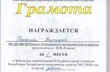 Поздравляем наших ребят, Гильфанова Искандера, Кошелеву Викторию, Еранову Сандру за победу в Зональных соревнованиях 2 Туриады среди учащихся Республики Татарстан по спортивному туризму 2017 - 2018 года. Руководитель Егоров Н.И.