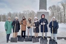 Уборка Обелиска Славы. Отряд ЮНАРМИЯ ежегодно берут шефство над Обелиском Славы. Сажают цветы, подметают, зимой убирают снег. В этом году Обелиск обновили, он стал красивее и ярче. Ребята убрали снежные заносы, почистили дорожки.
