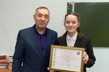 Награждение Козиной Вероники ученицы 9 б класса,руководитель Карпова А.В. представителем общественной организации Татарстан «Новый век» Набиуллиным М.М. начальником связи Камско-Устьинского района.
