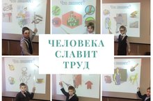 В рамках профориентационной работы 20 апреля в 1 Б классе прошёл классный час на тему: «Человека славит труд». Ребята изучили новые понятия «труд» и «трудовая деятельность». Познакомились с интересным миром профессий. Поиграли в игру «Лишний предмет». Выбирали предметы, которые люди используют в своих профессиях. В завершении урока сделали вывод о том, что в нашем мире все профессии нужны, все профессии важны.