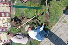 Отряд "Эколята" и отряд "Юнармии" высадили на территории посёлка саженцы сосны.