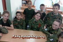 Отряд Юнармии провел с учащимися акцию по изготовлению Георгиевской ленточки
