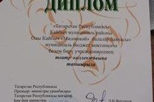 Вчера 8 декабря 2016 года в ГБОУ "Татарский государственный театр драмы и комедии имени К.Тинчурина прошел финальный этап республиканского фестиваля детских юношеских театров. Коллектив нашего детского сада награждена Дипломом Министерства образования и науки Республики Татарстан.