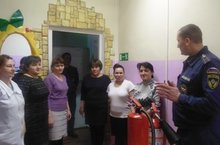 Сегодня в нашем детском саду прошла плановая проверка пожарного надзора. Главный государственный инспектор-начальник межрайонного отдела надзорной деятельности,майор внутренней службы Валиев И.И. провел инструктаж с сотрудниками детского сада