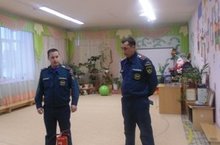 Сегодня главный государственный инспектор по Апастовскому и Кайбицкому муниципальным районам УНД и ПР ГУ МЧС России по РТ майор внутренней службы Кашапов Раиль Ринатович и инспектор МОНД по Апастовскому и Кайбицкому муниципальным районам УНД и ПР ГУ МЧС России по РТ ст.лейтенант внутренней службы Шафигуллин Илшат Хабибуллович провели проверку подготовленности детского сада к проведению Новогодних утренников и провели инструктаж с работниками детского сада.