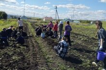 Ученики собрали урожай картофеля.