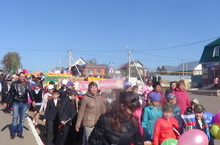 День Победы в с. Большие Кайбицы начался с праздничной демонстрации по улицам села к главному обелиску. Самая многочисленная и самая яркая колонна среди участников шествия - это традиционно наша колонна с красочными транспарантами, цветами и флажками. В этом году в колонну присоединились и школьники из наших филиалов.