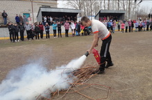 Сегодня, 27 апреля, в школе организовали День защиты детей по предупреждению и ликвидации чрезвычайных ситуаций и обеспечения пожарной безопасности. Учащиеся – юноши под руководством учителя ОБЖ Валиуллин И.Г. показали свою практическую готовность умело действовать в экстремальных ситуациях. В спортивном состязании ребята проявили силу, ловкость и скорость. Юноши преодолели небольшое расстояние с пожарным шлангом, который сначала надо было раскрутить, а потом быстро собрать. Следующим испытанием стало умение своевременного оказания первой медицинской помощи: крепкие ребята на носилках доставляли «раненых», а «санитары» спешил на помощь к «пострадавшему после пожара». В заключении ребята продемонстрировали умение использовать огнетушитель при тушении пожара. Как в любом соревновании есть победители, есть побеждённые. Победителем стал сборный отряд юных пожарных под командованием Сафина Рамиля.