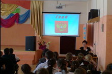 В рамках предметной недели истории и обществознания для старшеклассников был организован и проведен урок "Государственные символы Российской Федерации и Республики Татарстан", приуроченный ко Дню российского парламентаризма и 20 -летию Конституции Российской Федерации. Учитель истории Хайруллина А. Р. подготовила для 9-11 -ых классов очень полный и интересный материал, видеофильм. Что обозначают цвета государственных флагов, что символизируют изображения на Гербах, кто написал тексты и музыку Гимнов... - на все вопросы в ходе урока получены полные ответы. Чувство патриотизма и гордости испытывал каждый участник этого урока. В заключение присутствующие стоя исполнили гимн нашей Республики.