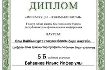 Бүген 28 февральдә Яшел Үзән шәһәренең 10 нчы номерлы гимназиясендә Каюм Насыйри исемендәге XXIII халыкара фәнни-гамәли конференциясе узды. Кабул ителгән 483 эшнең 269ы II турга сайлап алынып Идиятуллина Диләрә,11Б сыйныфы укучысы, үзен яхшы яктан күрсәтеп, 2 дәрәҗәдәге дипломга ия булды.