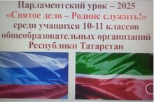 В нашей школе, как и во всех школах республики, состоялся, ставший традиционным, Парламентский урок. В этом году он прошёл на тему: "Святое дело-Родине служить". На нем ученики 11 классов вспоминали героев разных периодов истории нашей страны, рассуждали о том, что каждый из нас может и должен сделать для ее прогрессивного развития и процветания. Любить Родину, изучать историю и культуру, приумножать ее богатства, хранить покой-долг каждого гражданина Отечества.