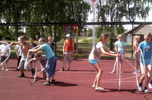Сегодня в лагере "Улыбка" День спорта. Сколько спортивных мементов нас сегодня ожидает: весёлые старты, игры с мячом, обручем и много дрогого не менее интересного.