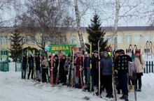 Сегодня в нашей школе проходит массовый старт в рамках Лыжни России. Все учащиеся с 1-го по 11-ый класс хотят соревноваться за первенство на приз А.Е.Кошкина, чьё имя носит наша школа.