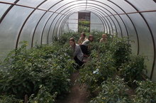 В нашей теплице очень хороший урожай помидор. До сих пор помидоры зреют на корню.