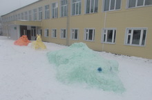 В рамках подготовки школы к Новому году каждый класс лепит свою снежную скульптуру. Работа идет весело. Территория школы каждый день пополняется интересными сказочными персонажами.