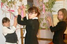 На Чудо-дерево читатели завязывают ленточки, ниточки по цветам, в зависимости от интересов по выбору читаемых книг.
