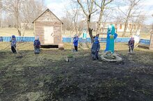 Коллектив Багаевского детского сада принял участие в субботнике, побелки столбов по поселению